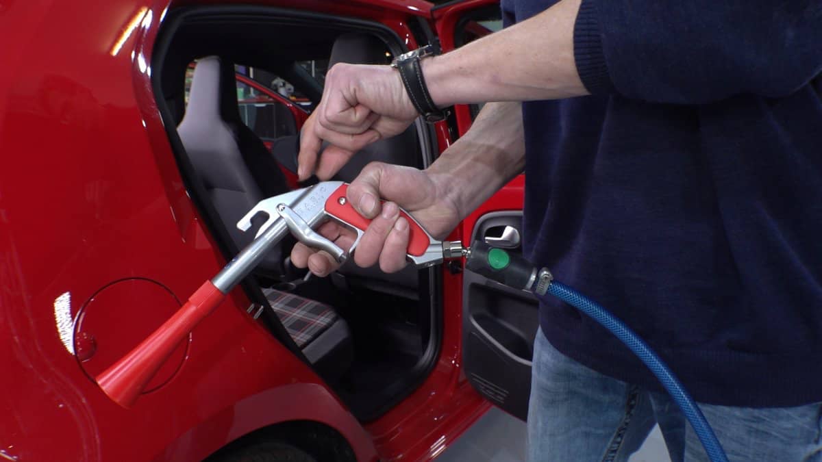 Whenever the conventional liquid container makes it difficult to access tight areas, the Tornador® BASIC Z-014RS has proven to be especially successful: Under the seats, in the engine compartment, on the radiator grill, in the handle shells, under the filler cap, or also with all electrical components, the Tornador® BASIC Z-014RS cleans and dries accurately. The built-in swivel air inlet make the usage and handling even easier.