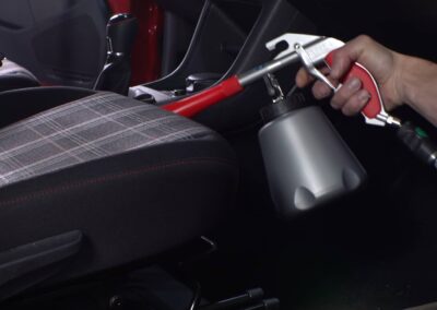 Just like all other Tornador® RS Tools, the Tornador® CLASSIC Z-010RS is also equipped with swivel air inlet. The handling and user friendliness are brought to another level through this. For cleaning all kinds of automotive interior surfaces, door panels, dash boards, steering wheels, fabric upholstery, carpets, floor mats and between seats Tornador® CLASSIC Z-010RS is a great solution. Especially hard to reach areas can be cleaned very deeply with the Tornador® CLASSIC Z-010RS. As the gun releases only small amounts of detergents the operating costs are very low. Summed up the customer gets a deep pore-cleaning effect and will reach higher satisfaction with his customers.